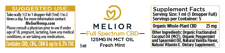 This MCT Oil provides you with an organically grown hemp extract. It is naturally designed to help foster a healthily balance throughout your bodies Central and Auto-Immune Systems. Melior only uses premium CBD grown in organic soil.